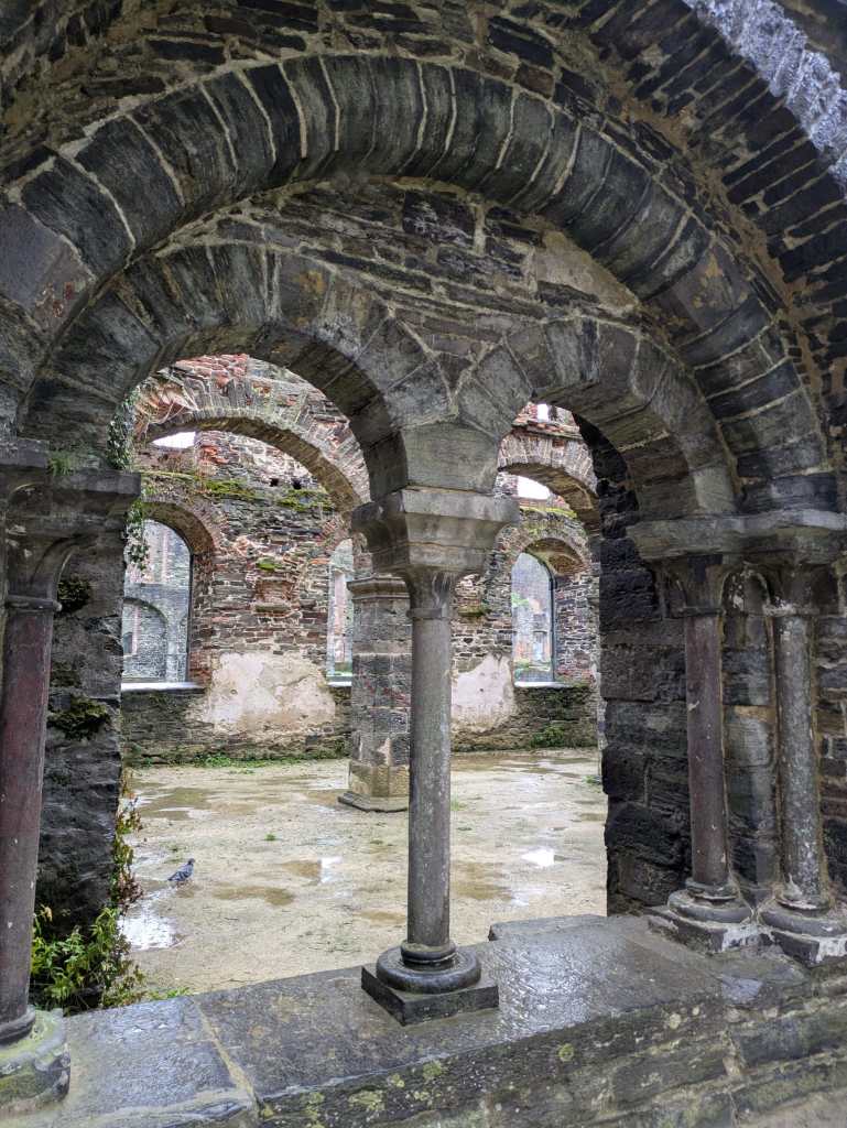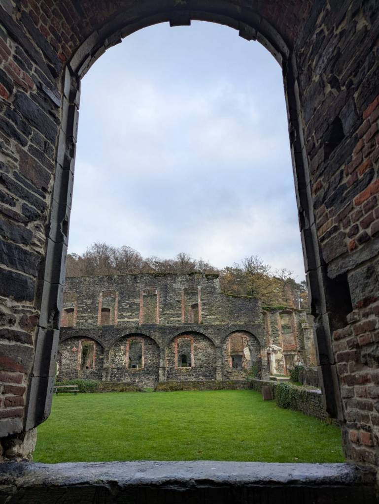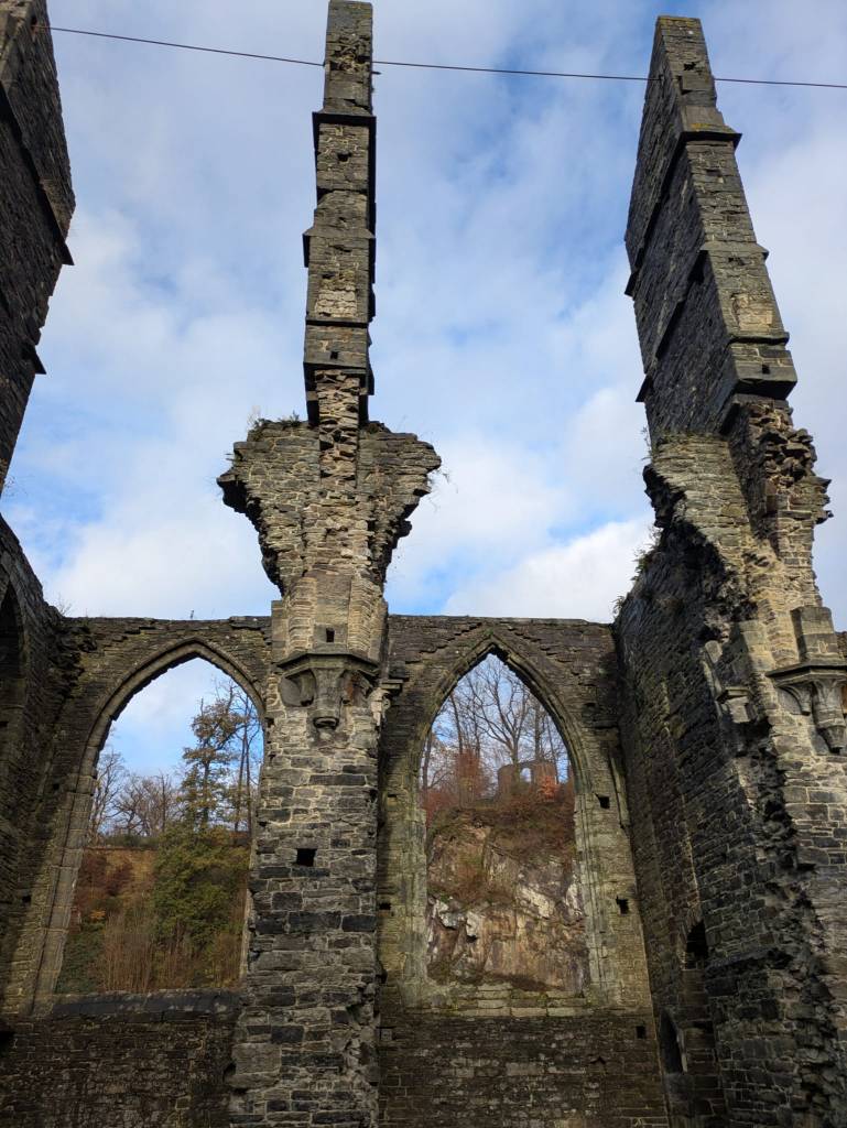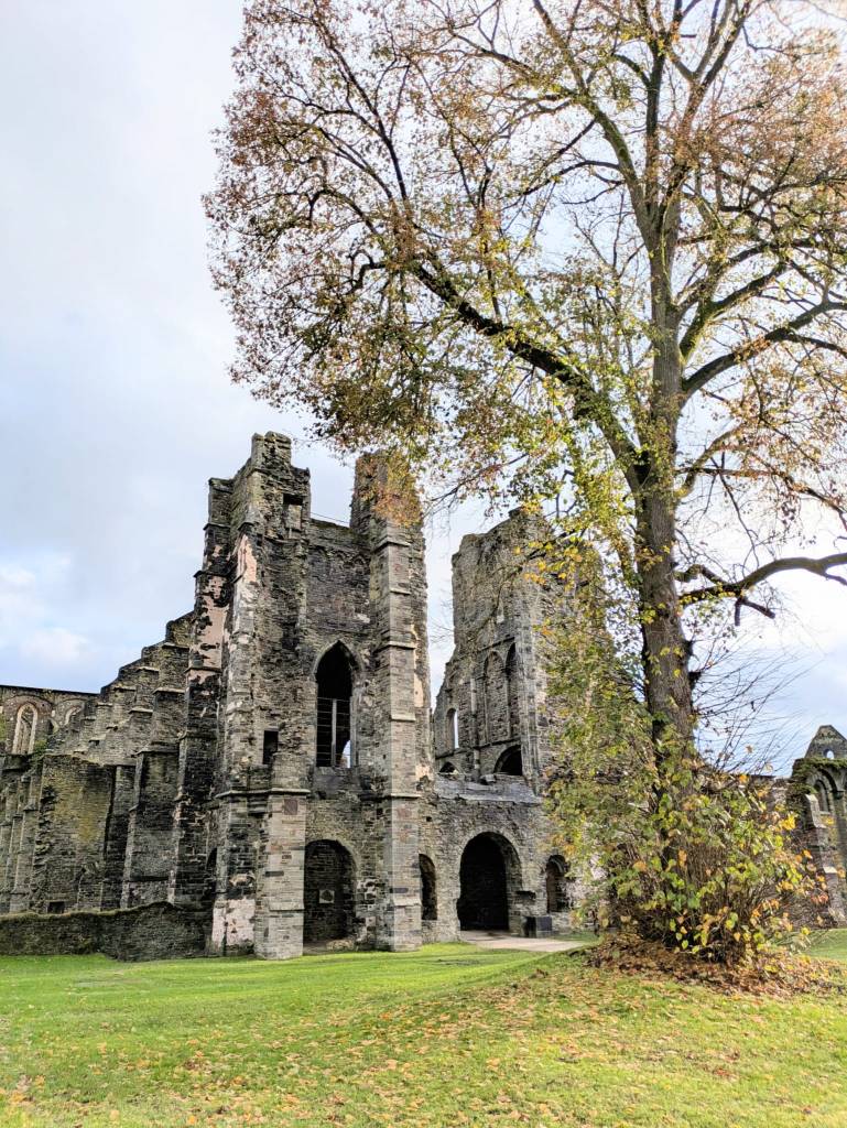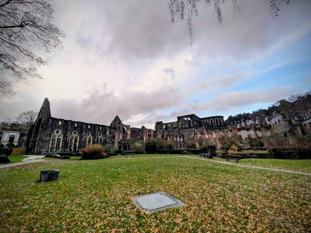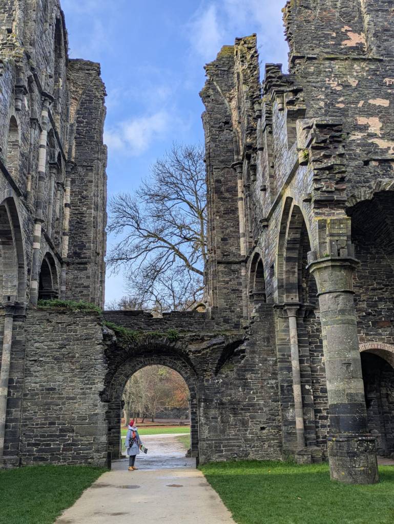Brysselistä noin 30 kilometriä etelään sijaitsee Abbaye de Villers, Villersin luostari. Tai oikeammin sanottuna luostarin rauniot. Raunioinakin ne ovat kävijälle mykistävä muistutus luostarin loistoajasta. Pilvisenä, osin sateisenakin maanantaipäivänä marraskuussa teemme tutustumisreissun sinne. Ilmeisesti johtuen säästä saamme Esikoisen kanssa lähes yksinämme kierrellä alueella. Lippujen myyjä kertoo, että kävijöitä on tänään ollut vain kymmenkunta. Paikka on auki ympäri vuoden.