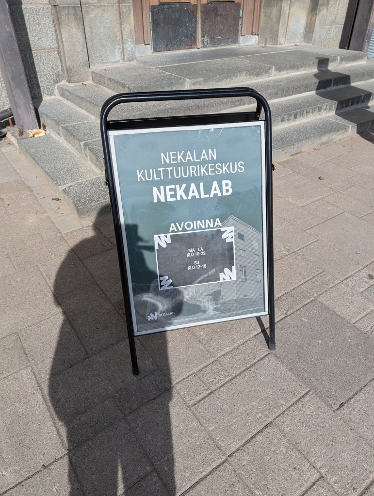 Tampereen Viinikan kaupunginosassa avattiin kolmisen viikkoa sitten Nekalan Kulttuurikeskus. Silloin siellä oli vaikka mitä happeninkiä. Monet tututkin ovat siellä käyneet pyörimässä. Kun me asumme tässä muutaman kilometrin päässä, emme pitäneet tutustumisella niin kiirettä. Ei tarvinnut lähteä tunkemaan. Itse rakennus on ainakin komea.