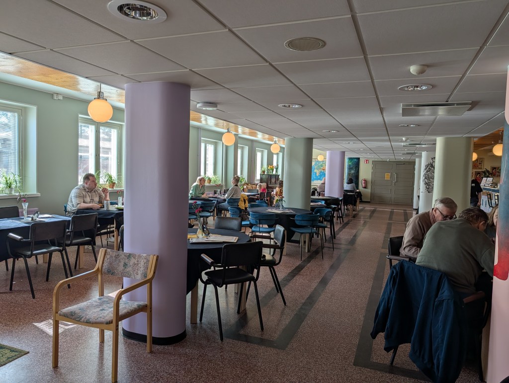 Nyt alkuviikosta mentiin ihan asiaksemme sinne Ravintola Nekalabiin lounaalle. Väkeä ei ollut tungokseen asti. Hyvä siis niin. Ravintola on aika kodikas. Tila on entinen koulun ruokala.